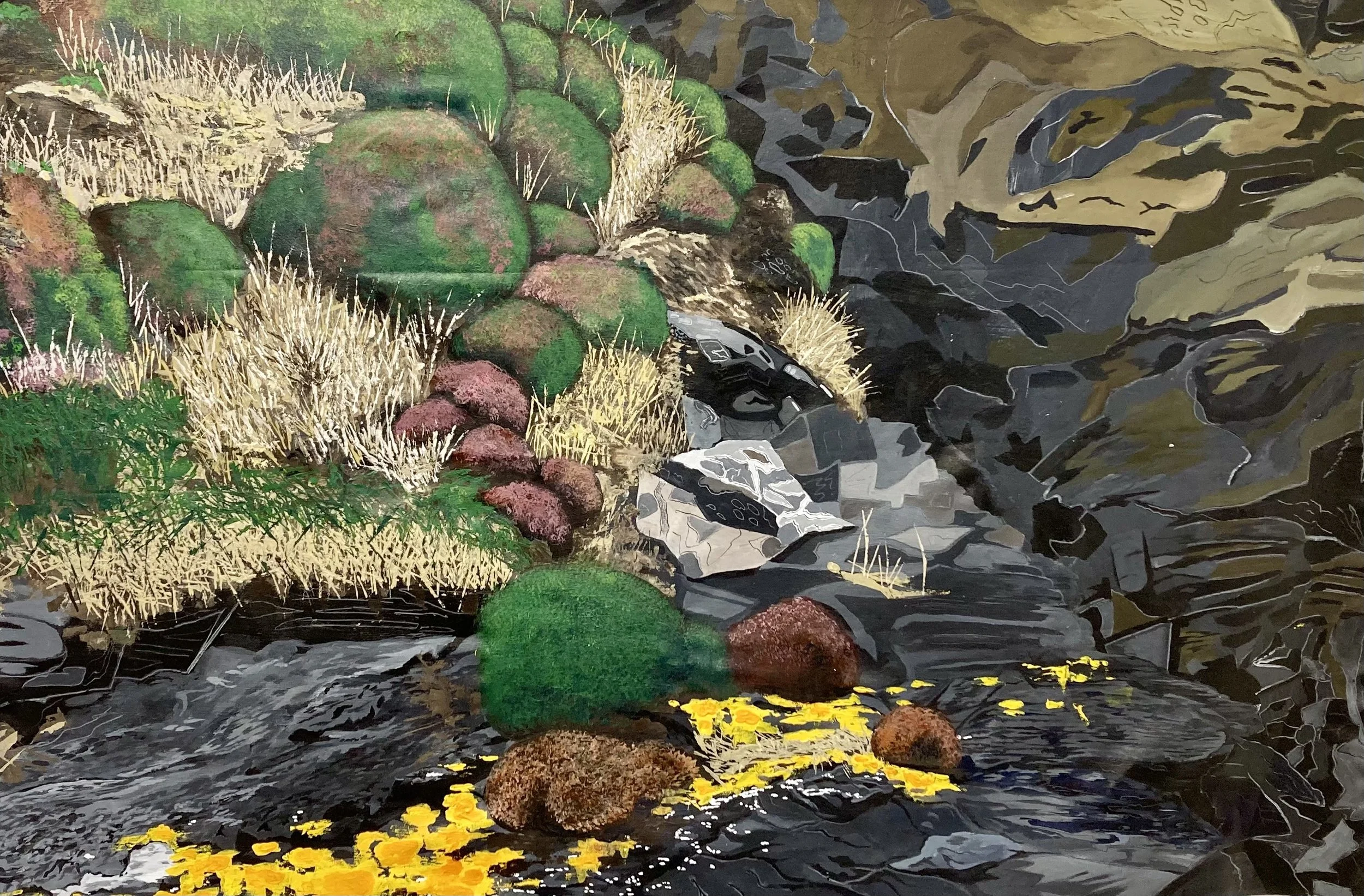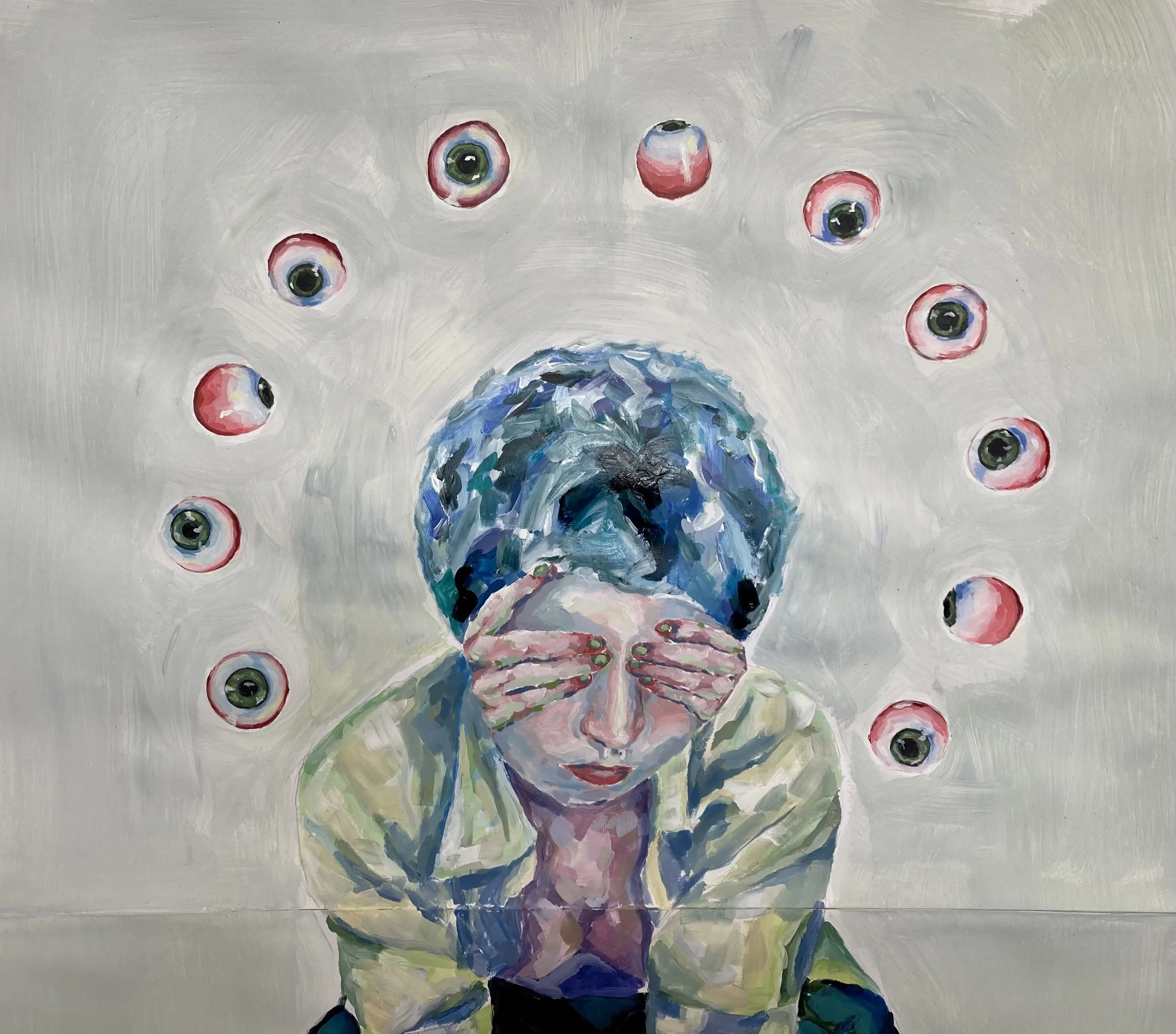 Amy Allen, Sream, 120 x 184 x 3 cm, acrylic on canvas / Ora Wildman-Green, Denial (first of the five stages of grief), 60 x 84 cm, acrylic on card